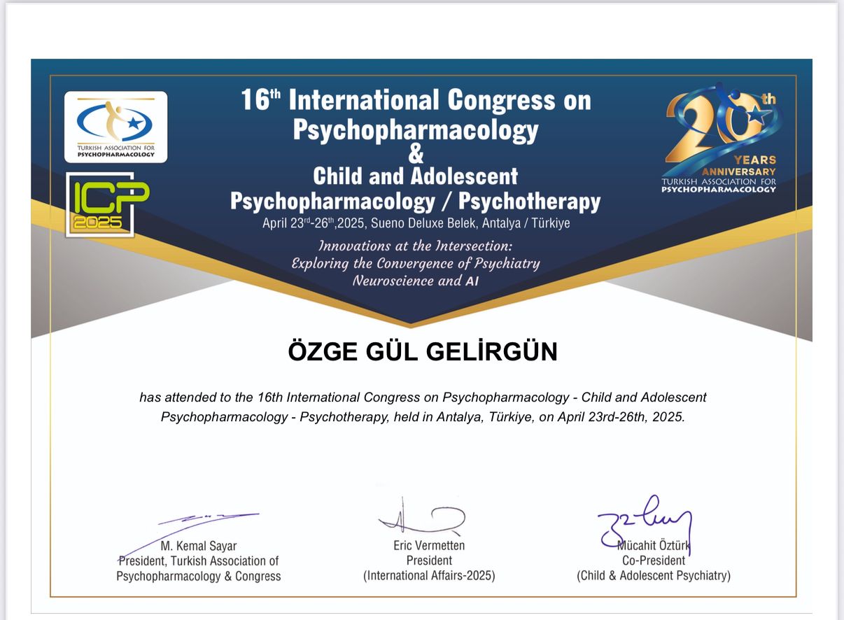 2020 yılında Bilişsel Davranışçı psikoterapiler Derneği tarafından 50 saatlik Bilişsel ve Davranışçı Terapi Kuramsal Eğitim sertifikası